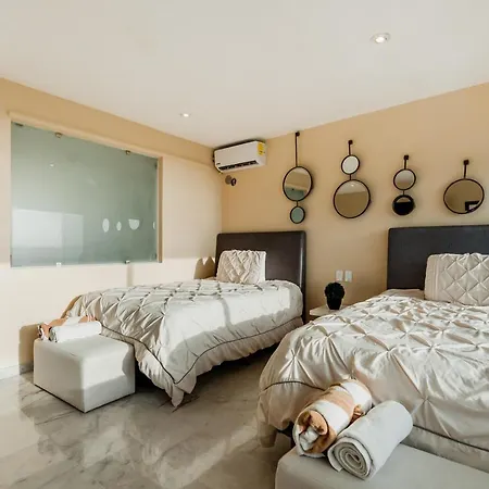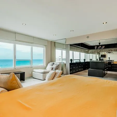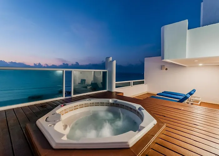 Det 3-stjärniga Rooftop Private Jacuzzi In Beach Front Penthouse Aparthotel Cancún ligger cirka 15 minuters bilfärd från Backstage Theatre och cirka 25 minuters gångavstånd från El Rey-ruinerna. Gästerna som bor på hotellet kan parkera sin bil på plats.